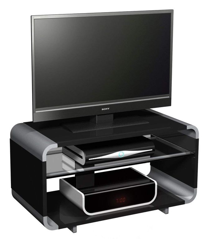 Minimalist Curved Support With Glass Shelf for Flat Screen TVs